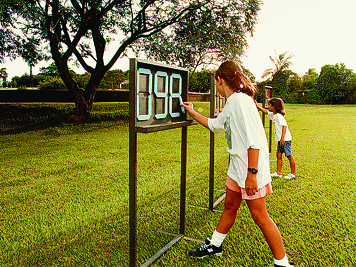 As equipes se revezam, correndo em ritmo de estafeta para montar algarismos peça por peça em um painel. A torcida é emocionante, pois o número deve ser decrescente e vence a equipe que marcar o zero em menos tempo.