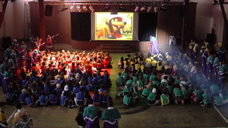 No Ginásio de Esportes, cada grupo vai formando rapidamente um quebra-cabeças gigante: esse é o caminho que leva até a Ilha. Então, o capitão da equipe já pode sair correndo de seu território com sua bandeira em punho, para cravá-la, vitoriosamente, lá no alto.