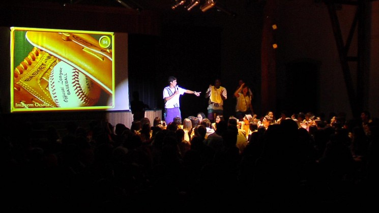 Da platéia, os alunos observam uma tela onde são projetados fragmentos de imagem, formando um mosaico. A decisão de responder ou não, acionando uma botão faz parte da estratégia. As equipes tentam decifrá-la, em uma série de acertos e erros. Além de ser muito dinâmico, este jogo abrange diversos temas e graus de dificuldade.