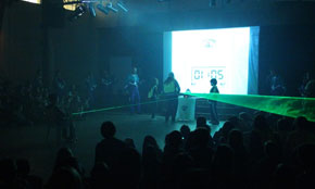 Cronômetro preparado no telão, iluminação baixa, efeito de fumaça no ambiente e cinco integrantes de cada equipe. Como em filmes de ficção científica, cada equipe deverá acertar um feixe de raio laser em uma foto-célula de apenas 2mm para acender um globo de plasma. Porém, esse raio deverá passar por quatro espelhos antes de acender o globo. Como o laser e os 4 espelhos estarão com os alunos, eles deverão ter uma boa estratégia para acender o globo de plasma no menor tempo possível. O silêncio e a tensão só acabam quando a equipe atinge o objetivo.
