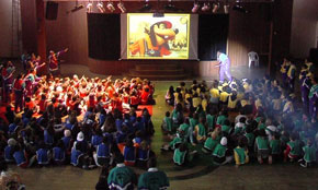 No Ginásio de Esportes, cada grupo vai formando rapidamente um quebra-cabeças gigante: este é o caminho que leva até a Ilha. Então, o capitão da equipe já pode sair correndo de seu território com sua bandeira em punho, para cravá-la, vitoriosamente, lá no alto.