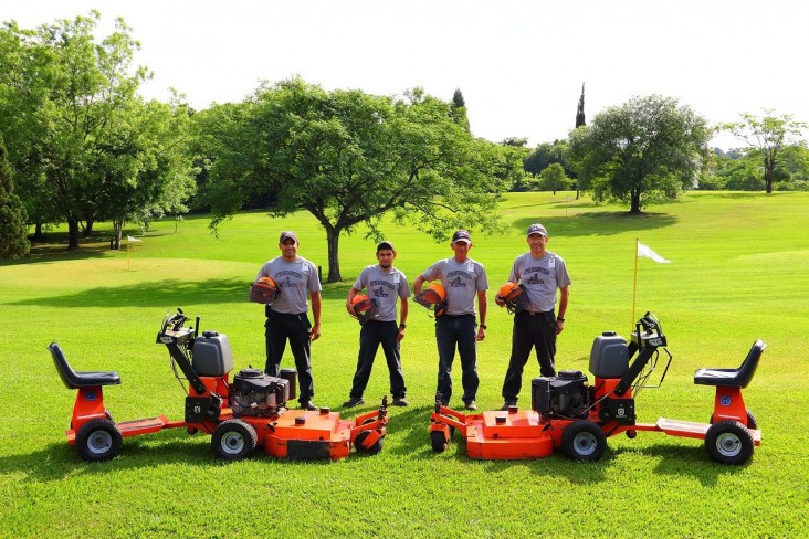 Aparar e irrigar as imensas áreas gramadas é apenas uma das tarefas dessa equipe incansável que se responsabiliza pelo plantio, conservação e replante de mudas de folhagens, flores, arbustos, árvores que compõem a paisagem sempre verdejante do Sítio do Carroção.